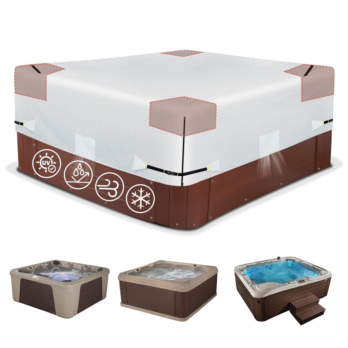 600D Outdoor Waterproof Hot Tub Cover, Silver-Coated Fabric Fade and Tear Resistant Spa Covers for Hot Tub with Webbing Buckle